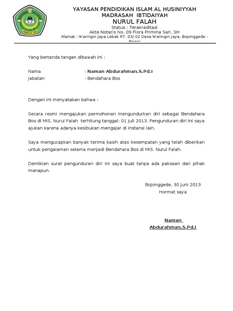 Surat Pengunduran Diri Sebagai Guru : Contoh Surat Pengunduran Diri Sebagai Guru Paud Weschool Id - Surat pengunduran diri lampiran :